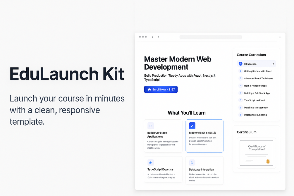 EduLaunch Kit – Course Creator Website Template (Next.js, Tailwind UI)
